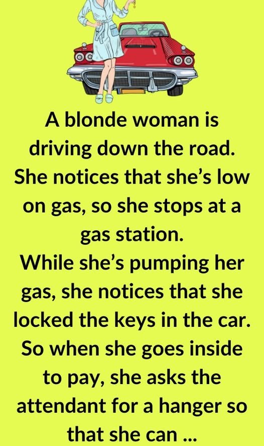 So when she goes inside to pay, she asks the attendant for a hanger so that she can attempt to open the door herself.