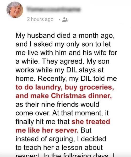“Lucy, after that can you run to the store? We need groceries for tonight and Christmas dinner. Nine people are coming, so make sure there’s plenty. I’ll leave money on the counter.”