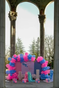 There was a giant box in the center of the yard that would release either pink or blue balloons when opened.