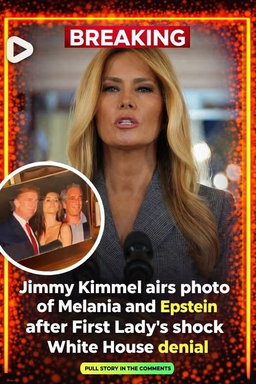 But Kimmel’s monologue turned that careful distancing into a late‑night spectacle. By flashing the old photo of Melania and Donald posing with Epstein — reportedly displayed in Epstein’s own home — he invited viewers to question her version of distance and innocence.
