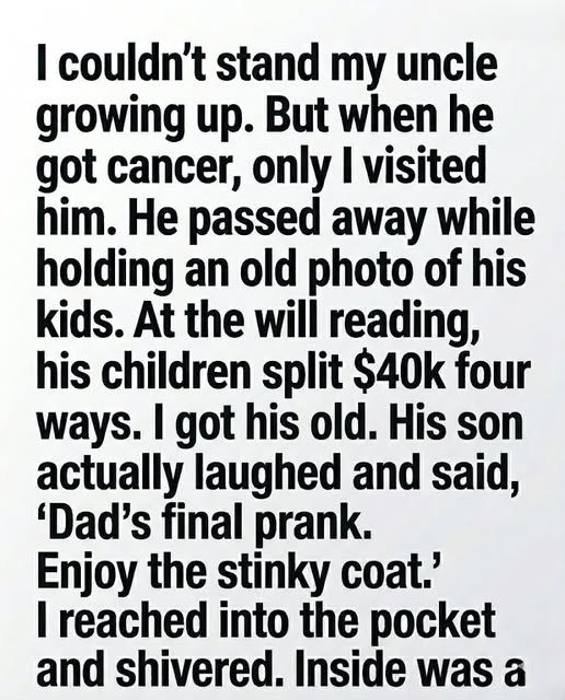 Elias understood now that the inheritance wasn’t just wealth—it was a worldview. In a family obsessed with being seen, his uncle had chosen the one person who had been willing to simply be there.