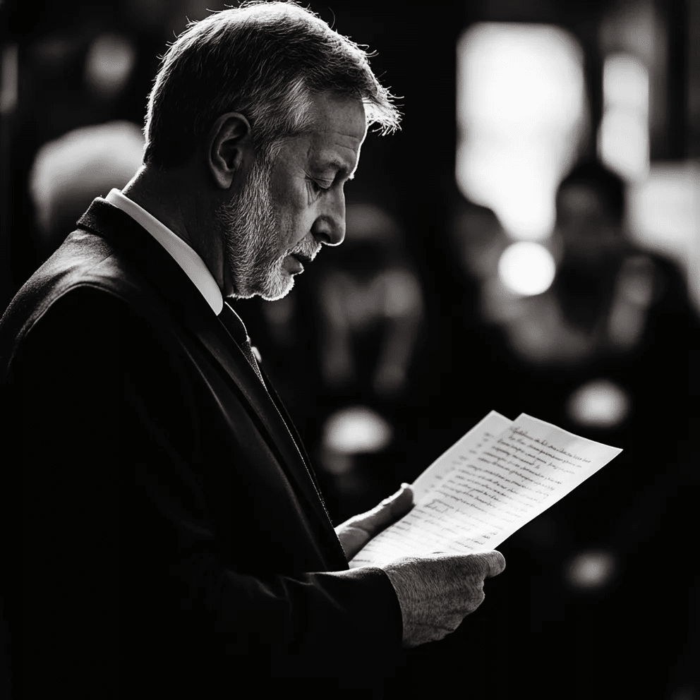 As he cleared his throat, the entire room fell silent and all eyes went to him. Something clutched a letter in his hand.