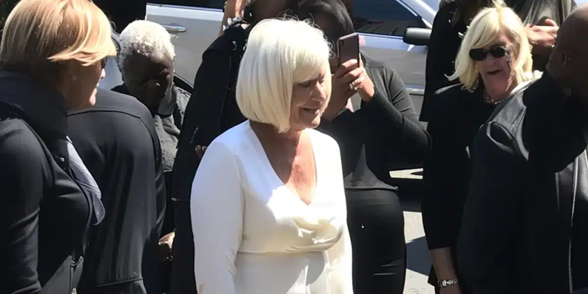As the ceremony got underway, she and her children actually found themselves in the front row, looking like VIPs at some posh gala. With their nearly blazing white outfits against the backdrop of black-clad mourners, they relished the attention.